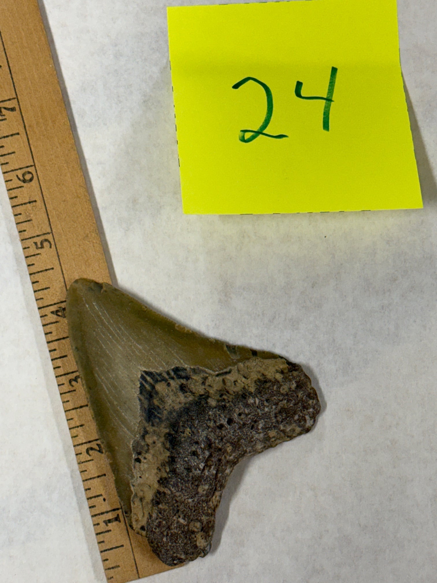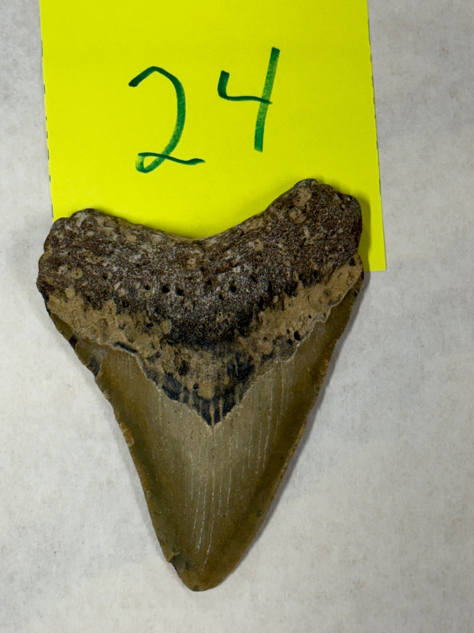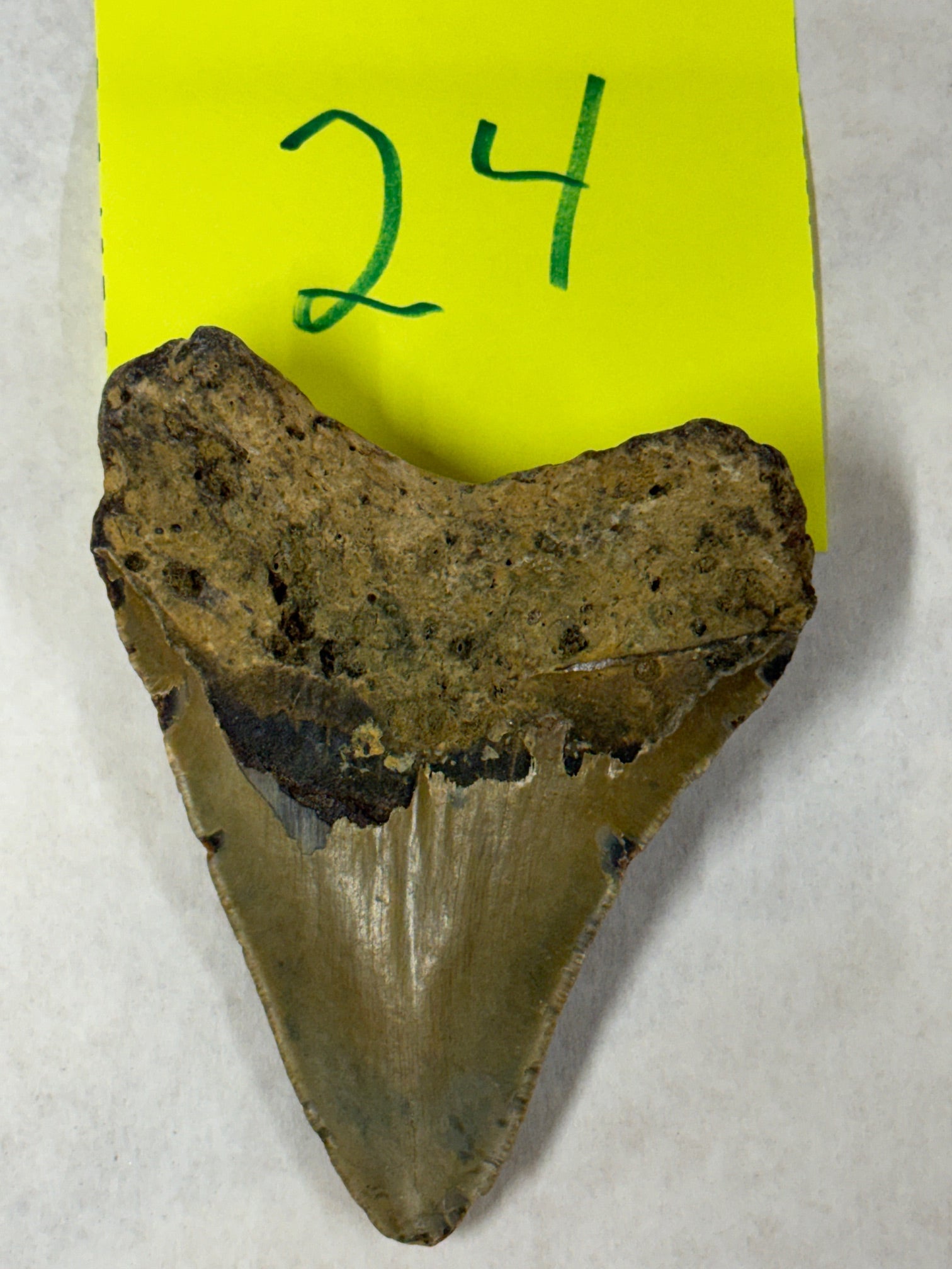 Megalodon teeth are not black in life—color comes from minerals absorbed during fossilization: