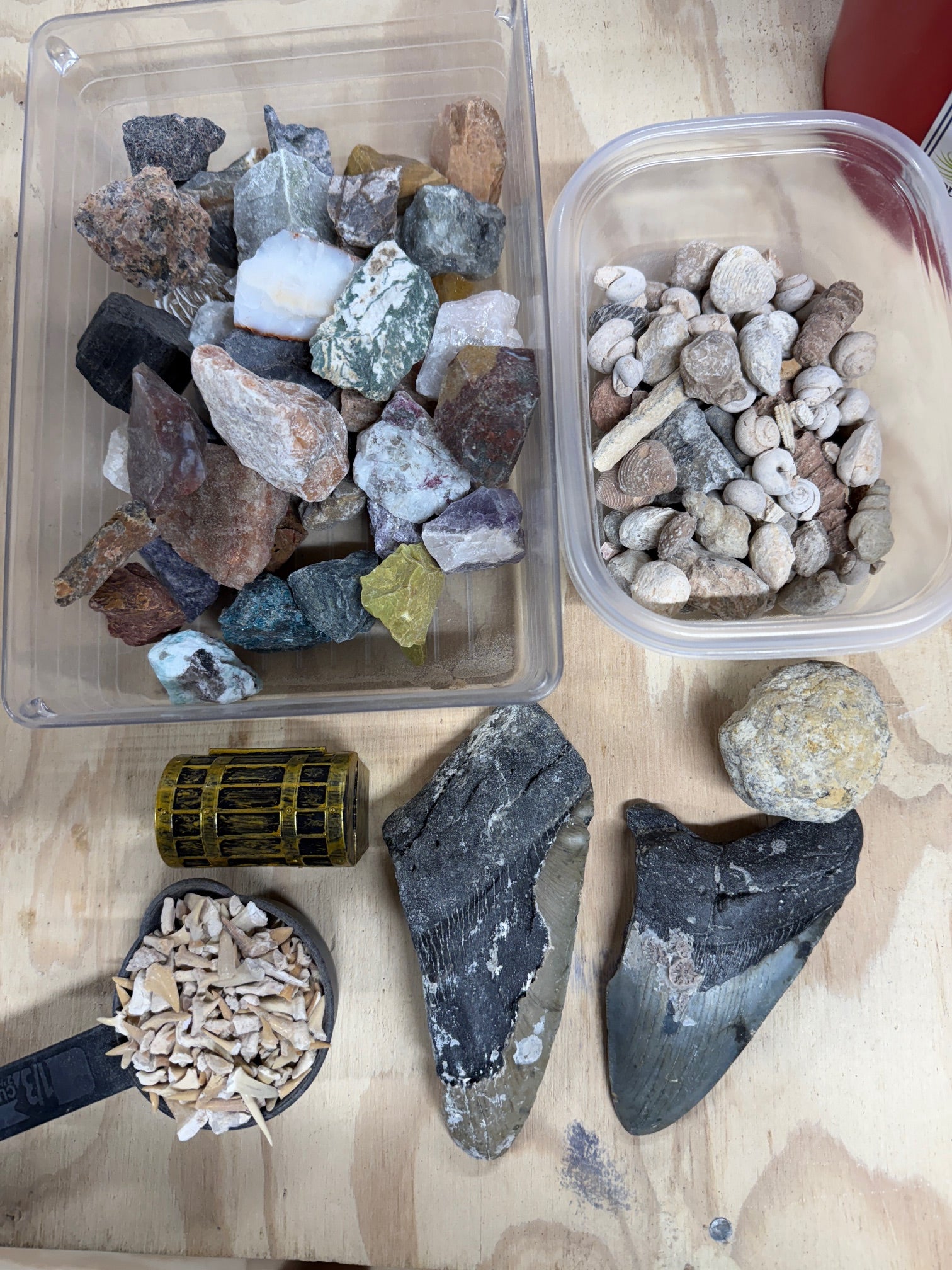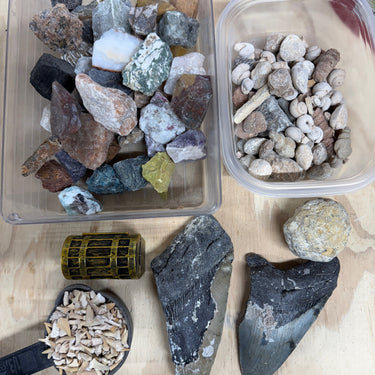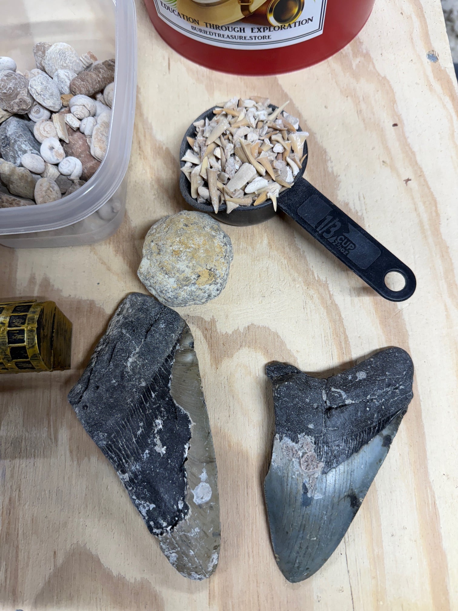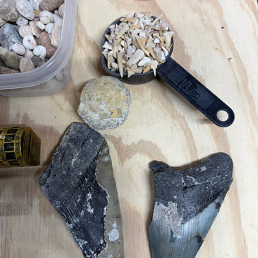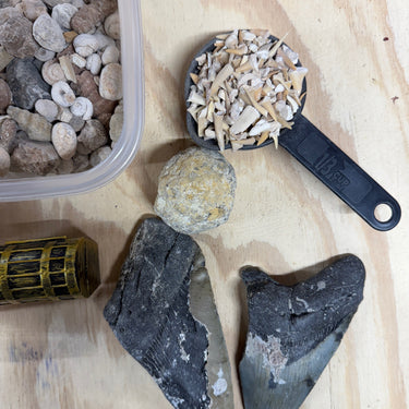 - 1 scoop of assorted authentic shark fossils: Buried treasure.