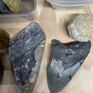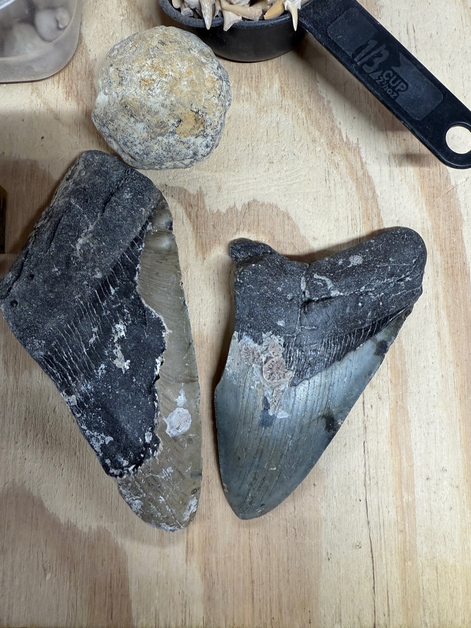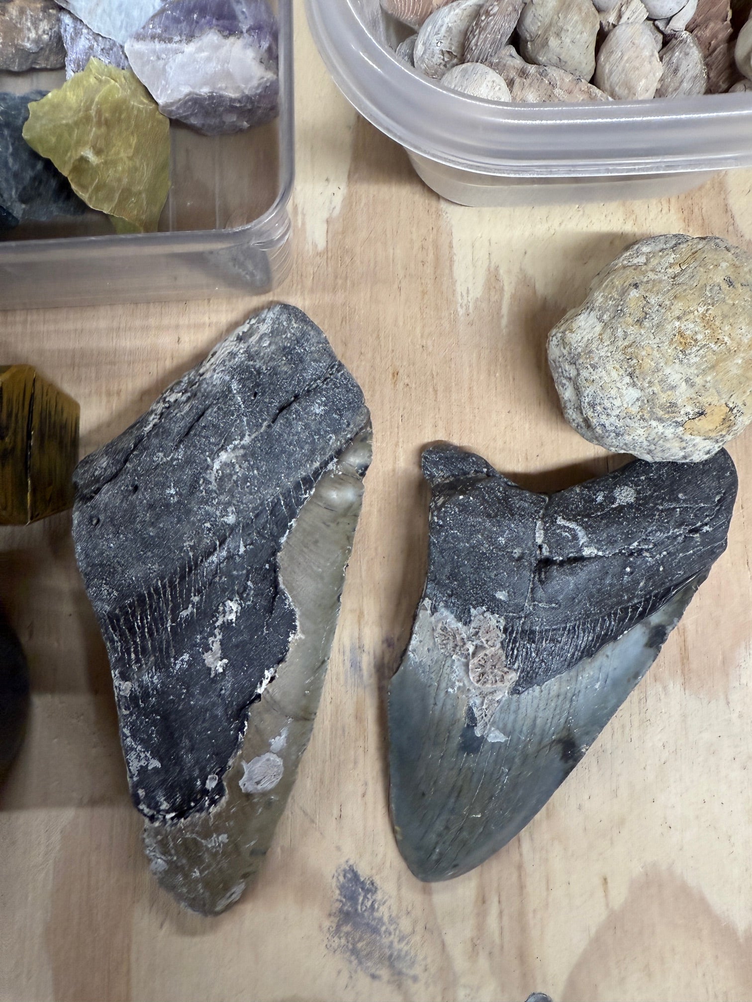 - 2 Authentic Meg frags: Millions of years old, found by divers off the coast of North and South Carolina.